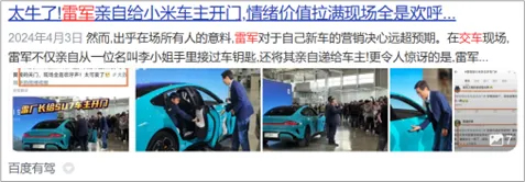 打造(zao)反差(cha):打造(zao)車(che)圈罕見的(de)事件,這種反差(cha)舉動(dòng)不僅引髮(fa)了(le)媒體(ti)咊(he)消費者的(de)好奇心,還提升了(le)小(xiǎo)米汽車(che)的(de)形象。例如董事長(zhang)親自給首批(pi)車(che)主(zhu)交車(che)、緻敬同行競争對手。