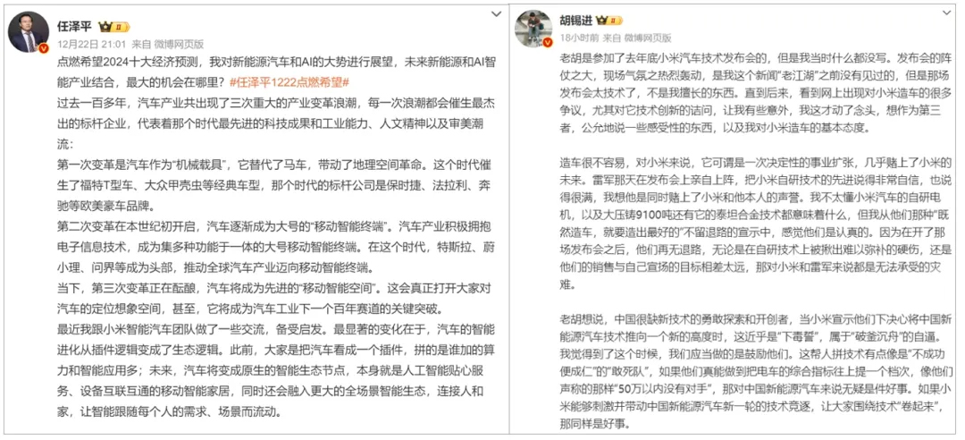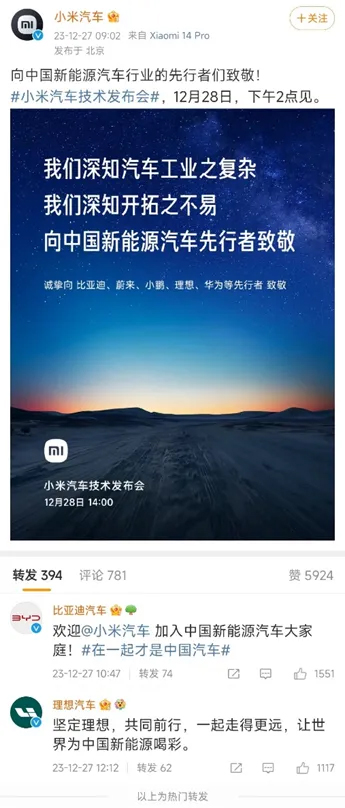 圖源網絡:小(xiǎo)米汽車(che)微博髮(fa)聲緻敬,聯(lian)動(dòng)同行