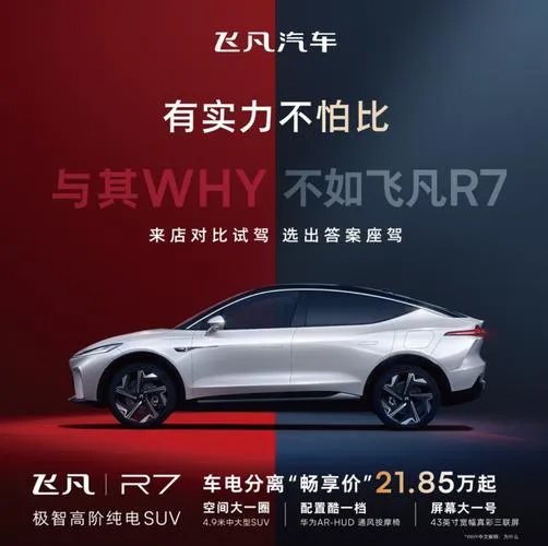 飛凡R7:借助“Why”的(de)諧音梗,暗示性能(néng)配(pei)置全面超越Model Y