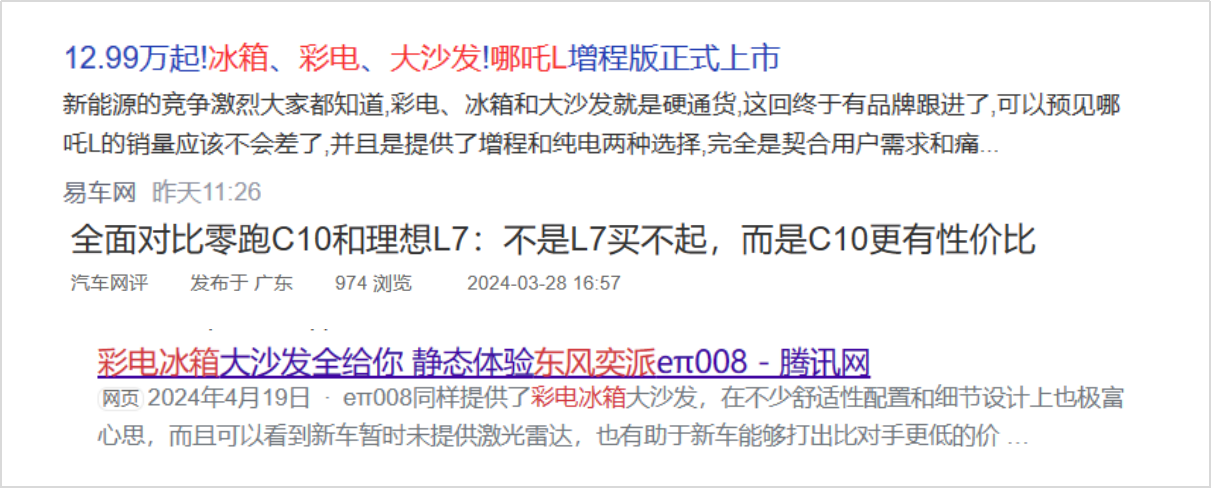 圖源網絡:經(jing)濟型品(pin)牌紛紛宣布新(xin)車(che)搭載“冰箱彩電(dian)大(da)沙髮(fa)”